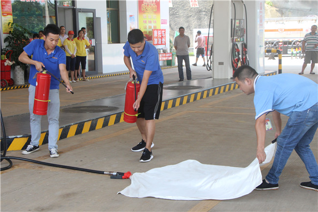 本網(wǎng)訊 6月28日,公司2019年消防安全應(yīng)急演練在銀誠(chéng)站舉行。資陽區(qū)安監(jiān)、商務(wù)等部門領(lǐng)導(dǎo)蒞臨指導(dǎo)。公司參加演練的人員及各站觀摩員工40多人參加了演練活動(dòng)。資陽區(qū)各民營(yíng)加油站近10名老板到場(chǎng)觀摩了演練。 目前,公司擁有加油、加氣、液化氣站近20個(gè),是消防安全重點(diǎn)單位。為有效凈化公司加油站站點(diǎn)的消防安全環(huán)境,切實(shí)加強(qiáng)加油站安全管理工作,提高加油站在應(yīng)對(duì)突發(fā)事件時(shí)的自救能力和提高員工的消防安全意識(shí)。公司精心組織了此次演練。為了提高安全意識(shí)和處置安全消防突發(fā)事故的能力,6月15日,公司還專門組織各站員工開展了消防安全知識(shí)培訓(xùn)。消防教官向員工們?cè)敿?xì)地講解了有關(guān)油品的危險(xiǎn)性和滅火基本原理及方法等知識(shí),介紹了滅火器的種類、用途,參加培訓(xùn)的員工每人實(shí)際操作了滅火器滅火。此次演練分兩個(gè)項(xiàng)目,一是加油車輛油箱口著火演練;二是卸油口膠管脫離跑冒油演練。首先模擬了演練加油員發(fā)現(xiàn)加油車輛油箱口著火,立即向站長(zhǎng)報(bào)告險(xiǎn)情,隨即站內(nèi)員工封鎖加油站進(jìn)出口,疏散站內(nèi)客戶及車輛,組織人員開展滅火,油箱口著火被迅速撲滅,事故車輛立馬被推出加油站......應(yīng)急處置方法得當(dāng),各個(gè)應(yīng)急處置環(huán)節(jié)有條不紊。隨后模擬卸油口膠管脫離跑冒油演練,同樣做得很到位。 在此次演練中,從組織到實(shí)施效果明顯,各參演人員在演練過程中充分體會(huì)到了消防安全的重要性。演練結(jié)束后,資陽區(qū)應(yīng)急辦領(lǐng)導(dǎo)對(duì)此次應(yīng)急演練給予了充分肯定。